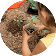 Crianças aprendem sobre plantas, alimentação saudável e responsabilidade ambiental.